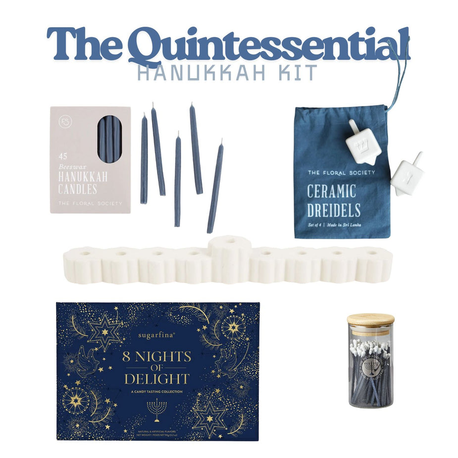 The Hanukkah kit for people who “have everything”… except style this good. A chic menorah, beeswax candles, ceramic dreidels, luxe matches, and nightly treats — all wrapped up in one elegant box. Just add latkes and laughter.